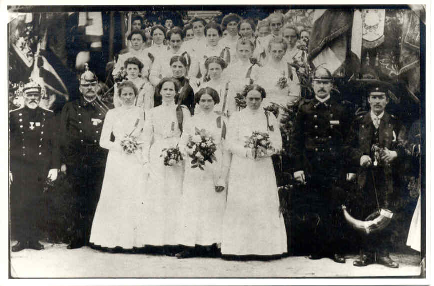 Fahnenmutter Anna Kornexl mit ihren Festjungfrauen